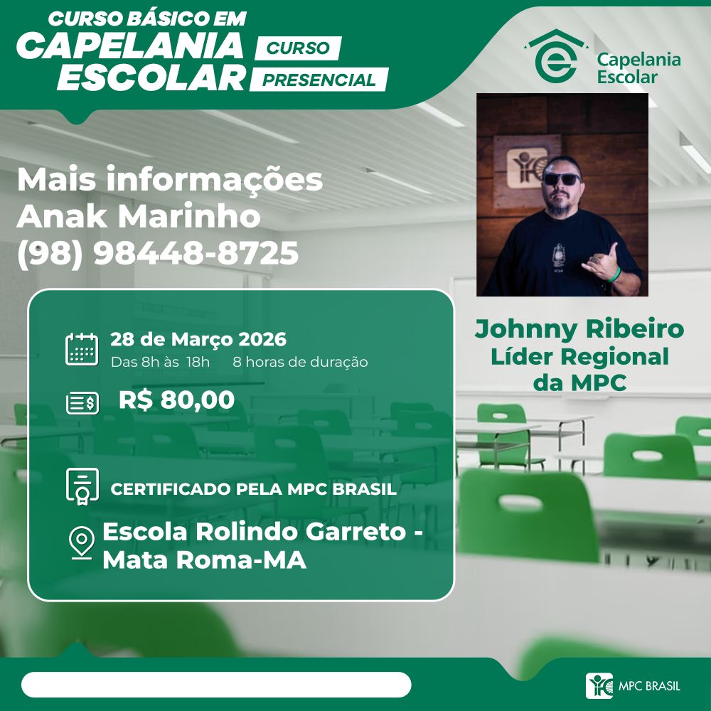 Curso Básico de Capelania Escolar MPC Brasil Entendemos a escola como um campo missionário, e nosso curso tem como objetivo […]