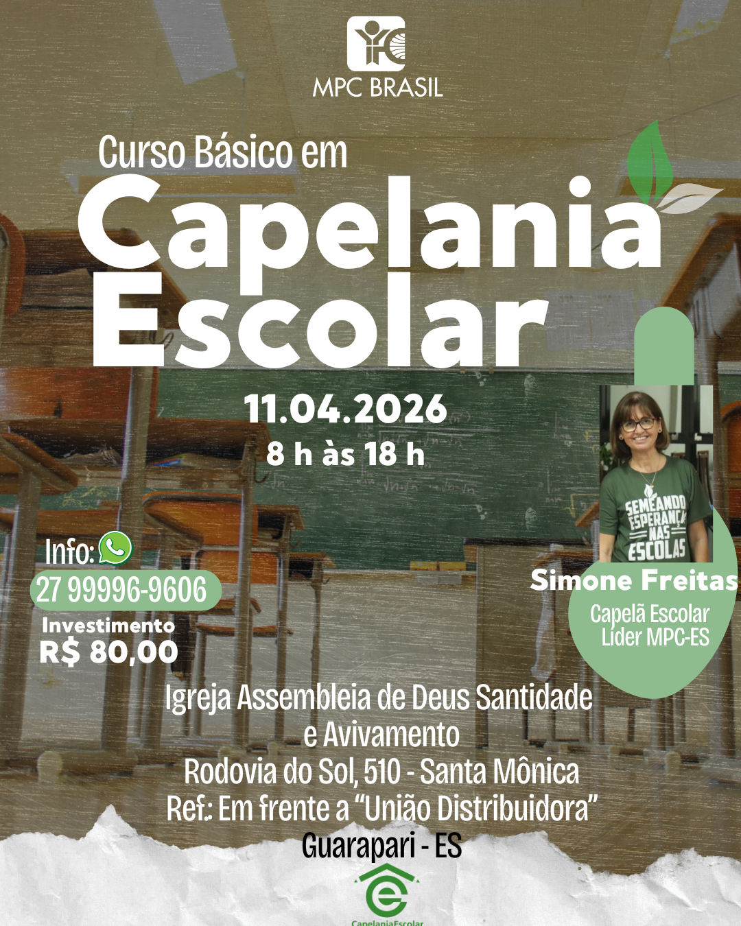 Curso Básico de Capelania Escolar MPC Brasil Entendemos a escola como um campo missionário, e nosso curso tem como objetivo […]